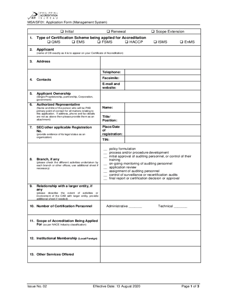To fill out the Philippine Accreditation Bureau Management, organizations must provide detailed information about their operations, quality management system, and compliance with accreditation standards.