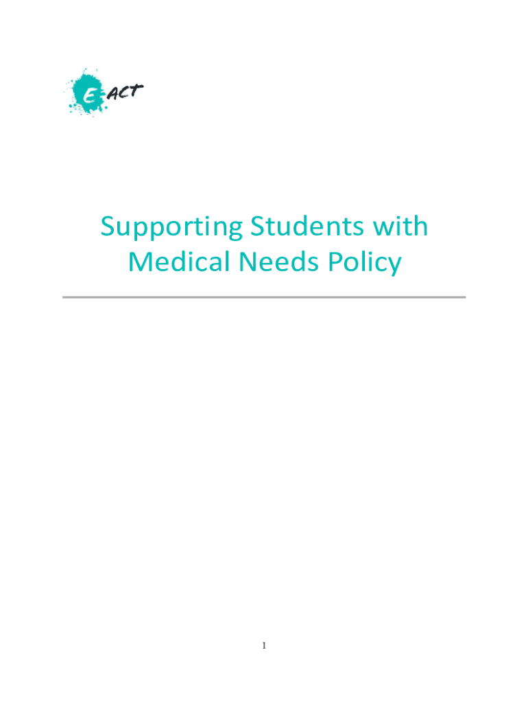 Supporting Students with Medical Needs Policy1Document provenance This policy was approved by Trustees as follows Approver: Education Committee Executive Leadership Team (ELT) Owner: National Safeguarding