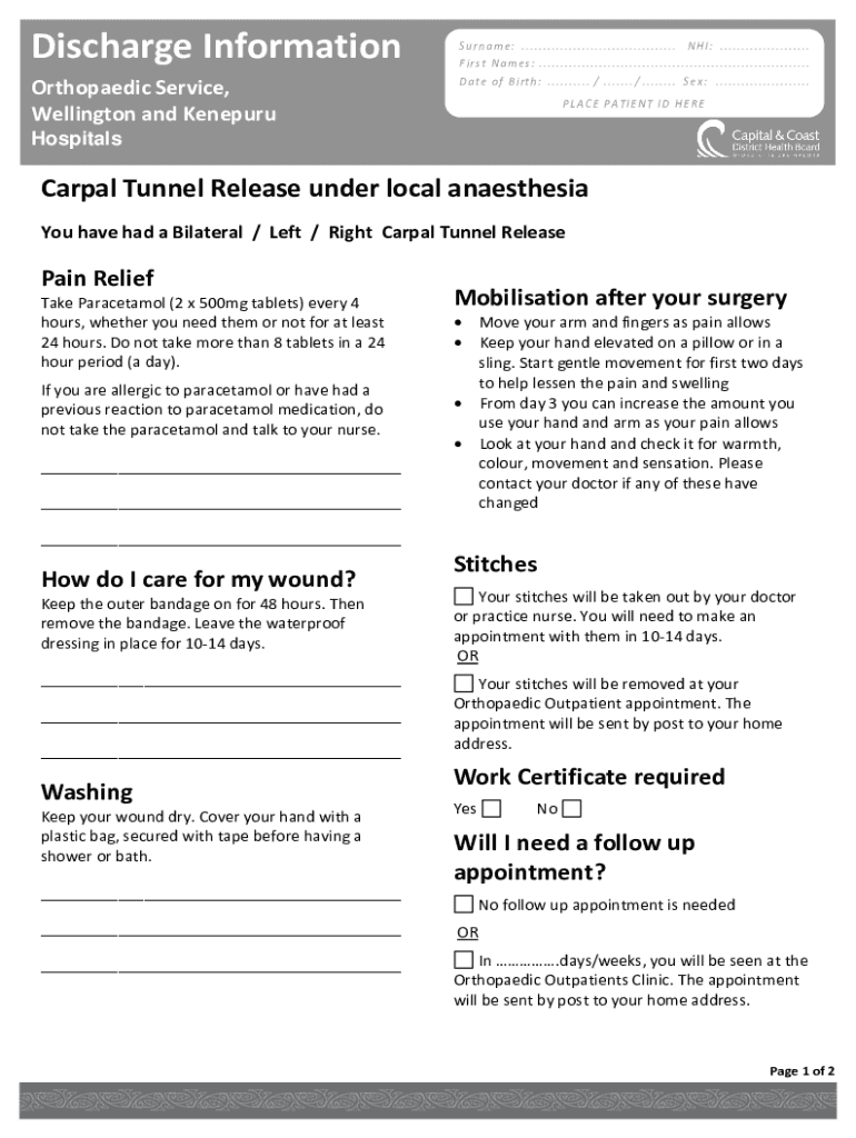 Wellington and KenepuruSurname: .................................... NHS: .....................