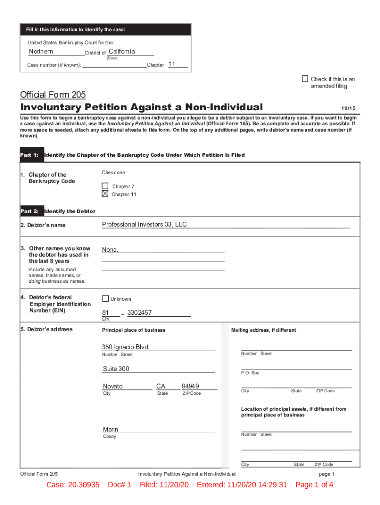 Fill in this information to identify the case: United States Bankruptcy Court for the:NorthernDistrict of California (State)Case number (If known):Chapter11 Check if this is an amended filingOfficial