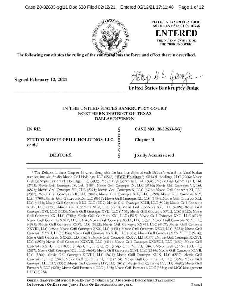 Case 2032633sgj11 Doc 630 Filed 02/12/21Entered 02/12/21 17:11:48Page 1 of 12The following constitutes the ruling of the court and has the force and effect therein described. Signed February 12, 2021