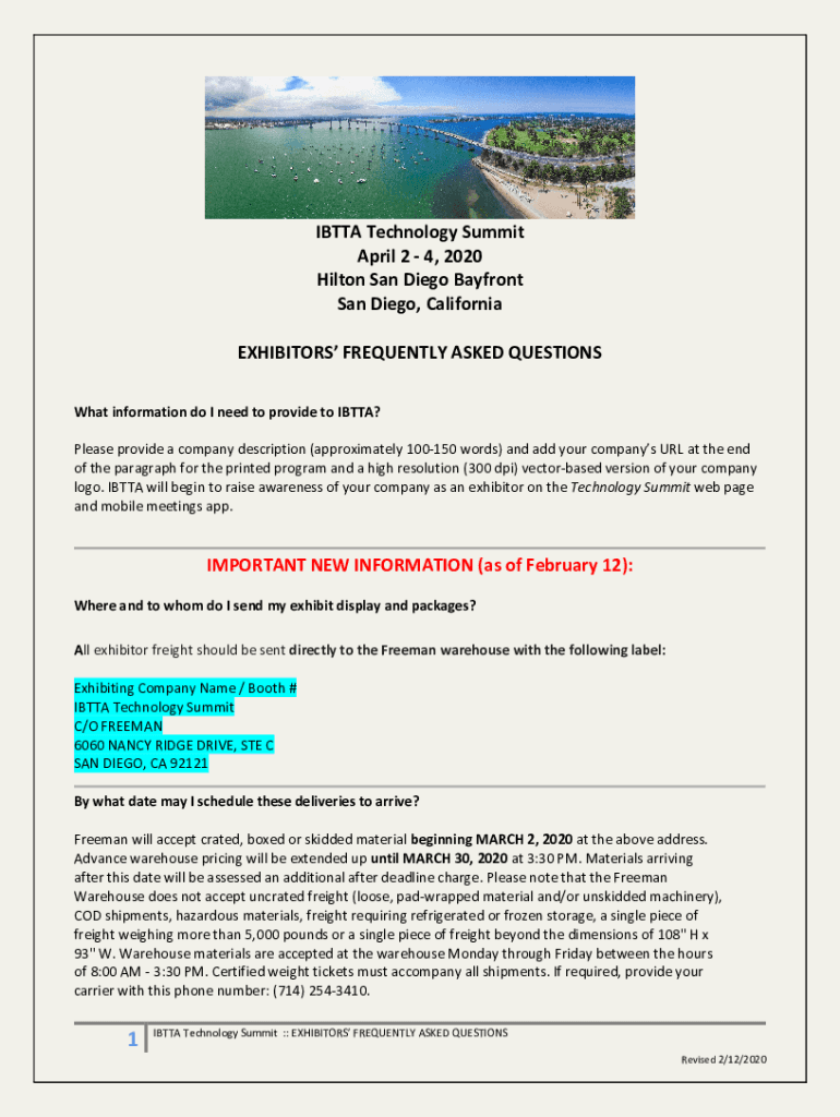 BETA Technology Summit April 2 4, 2020 Hilton San Diego Bay front San Diego, California EXHIBITORS FREQUENTLY ASKED QUESTIONS What information do I need to provide to BETA? Please provide a company