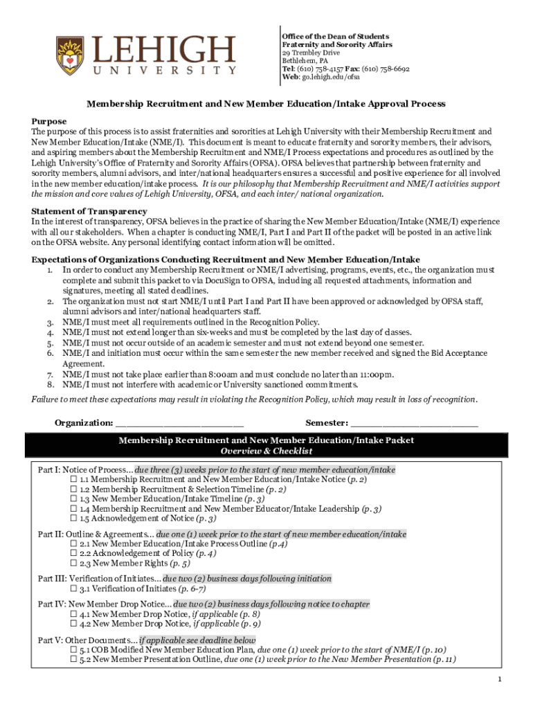 Get the free New Member Education FormsStudent Affairs - studentaffairs lehigh