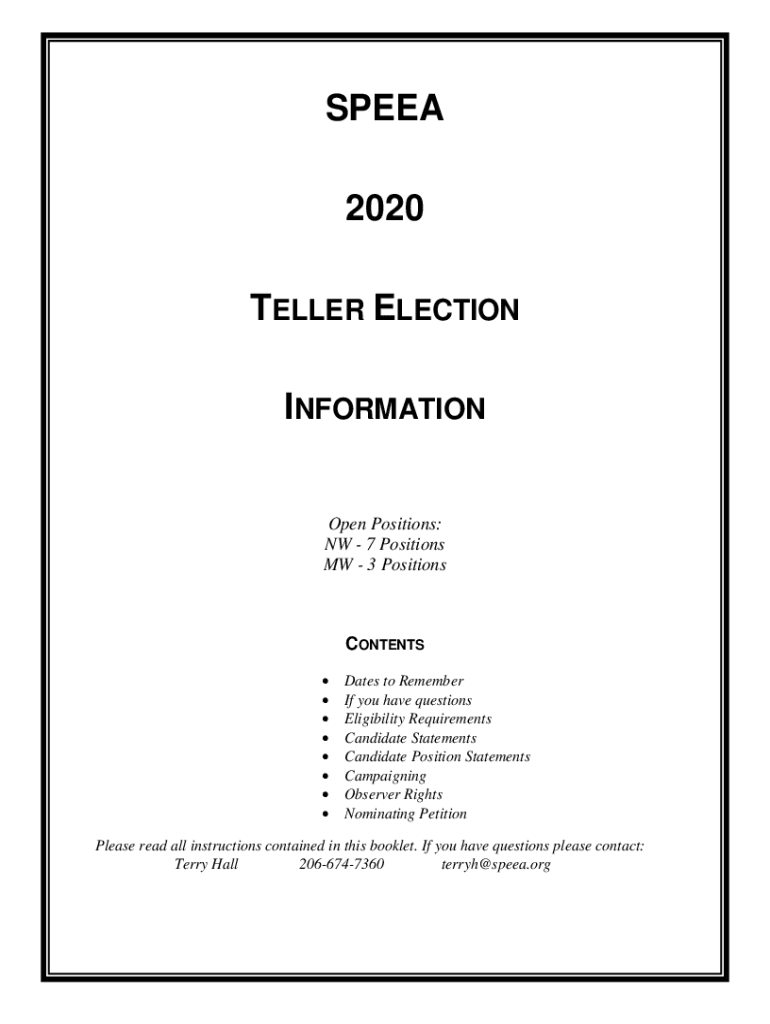 SPEED 2020 TELLER ELECTION INFORMATION Open Positions: NW 7 Positions MW 3 PositionsCONTENTS Dates to Remember If you have questions Eligibility Requirements Candidate Statements Candidate Position