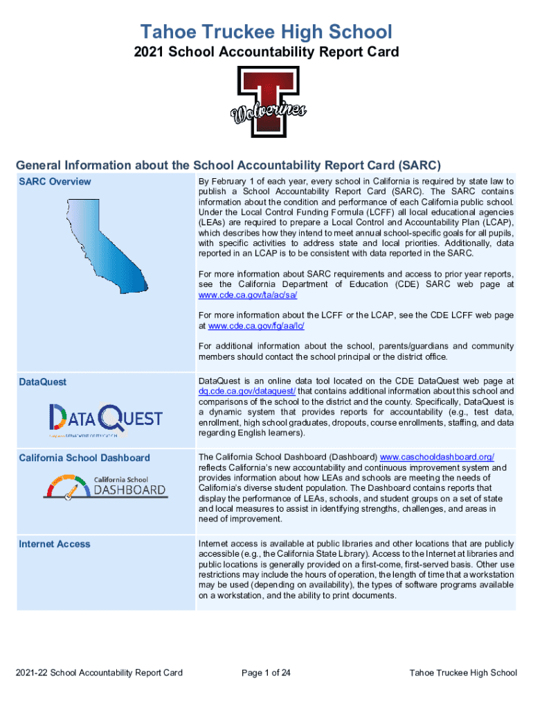 Tahoe Truckee High School 2021 School Accountability Report Card202122 School Accountability Report CardGeneral Information about the School Accountability Report Card (ARC) ARC Overview February