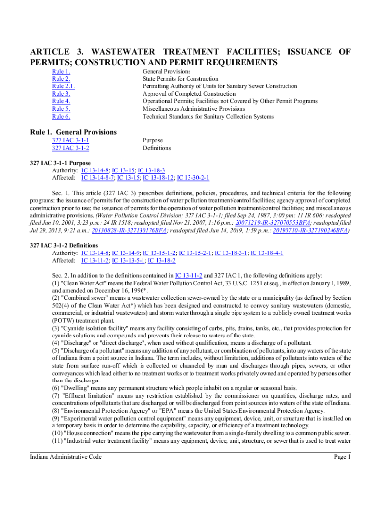 ARTICLE 3. WASTEWATER TREATMENT FACILITIES; ISSUANCE OF PERMITS; CONSTRUCTION AND PERMIT REQUIREMENTS Rule 1. Rule 2. Rule 2.1. Rule 3. Rule 4. Rule 5. Rule 6. General Provisions State Permits for