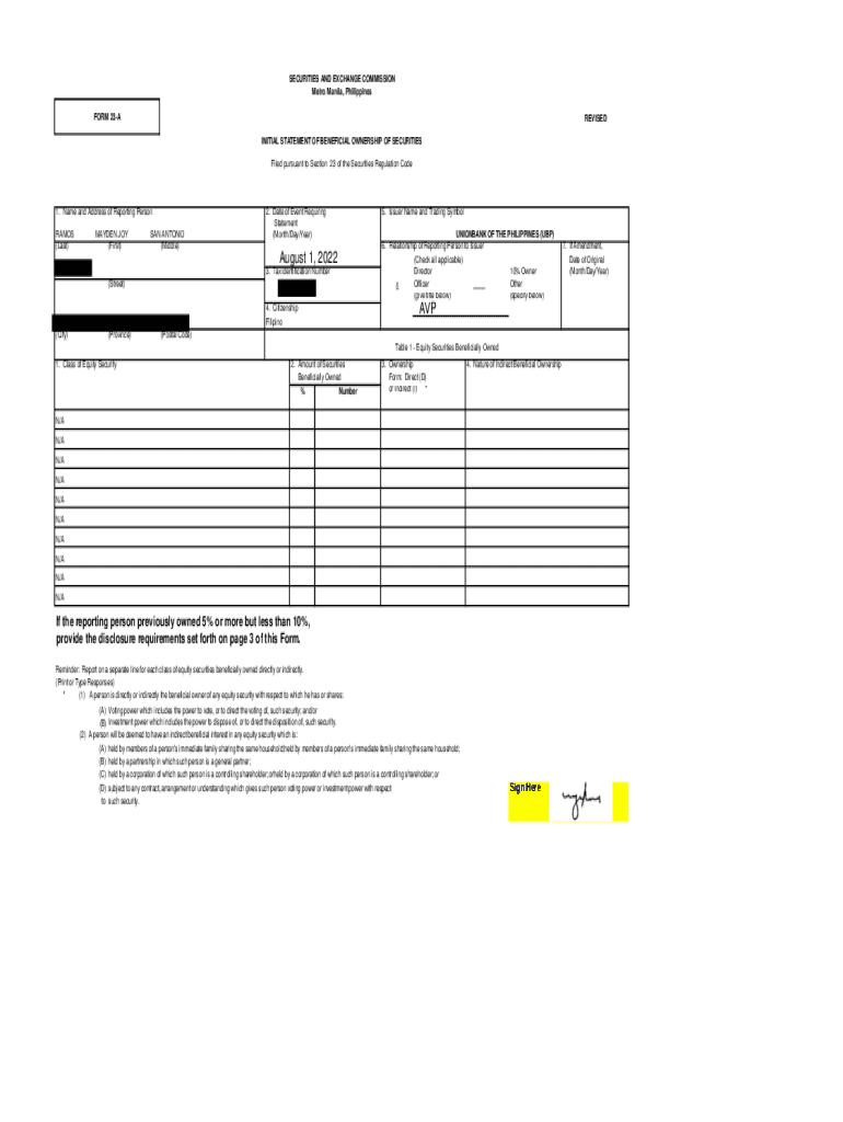 SECURITIES AND EXCHANGE COMMISSION Metro Manila, Philippines FORM 23AREVISED INITIAL STATEMENT OF BENEFICIAL OWNERSHIP OF SECURITIES Filed pursuant to Section 23 of the Securities Regulation Code1.