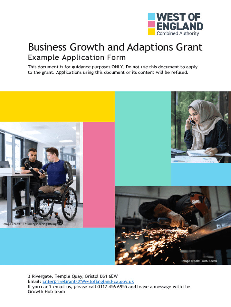 Get the free Business Growth and Adaptions Grant. Example Application Form