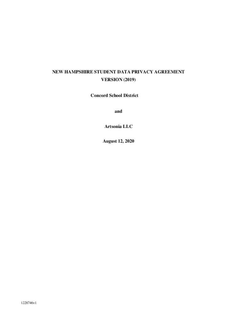NEW HAMPSHIRE STUDENT DATA PRIVACY AGREEMENT VERSION (2019) Concord School District and Antonia LLC August 12, 20201228746v1This New Hampshire Student Data Privacy Agreement (DPA) is entered into