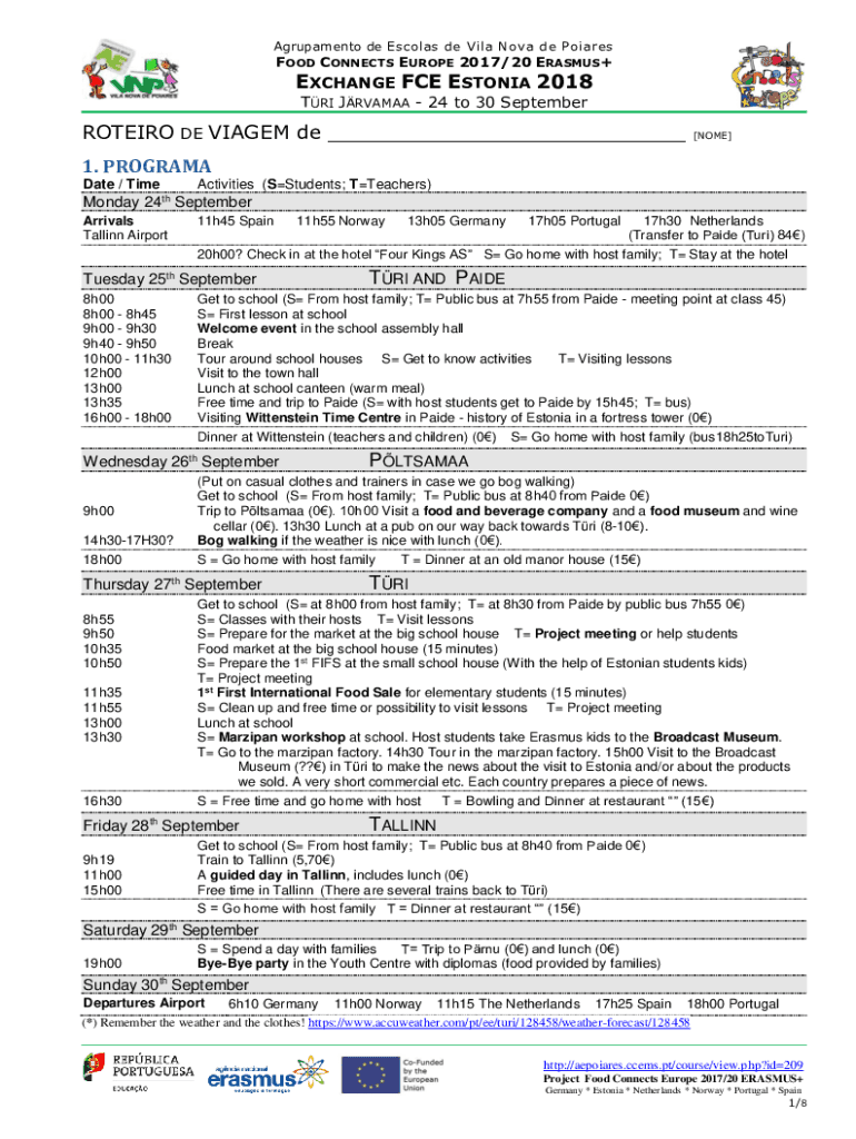 Agrupamento de Escolas de Vila Nova de PoiaresFOOD CONNECTS EUROPE 2017/20 ERASMUS+EXCHANGE FCE ESTONIA 2018