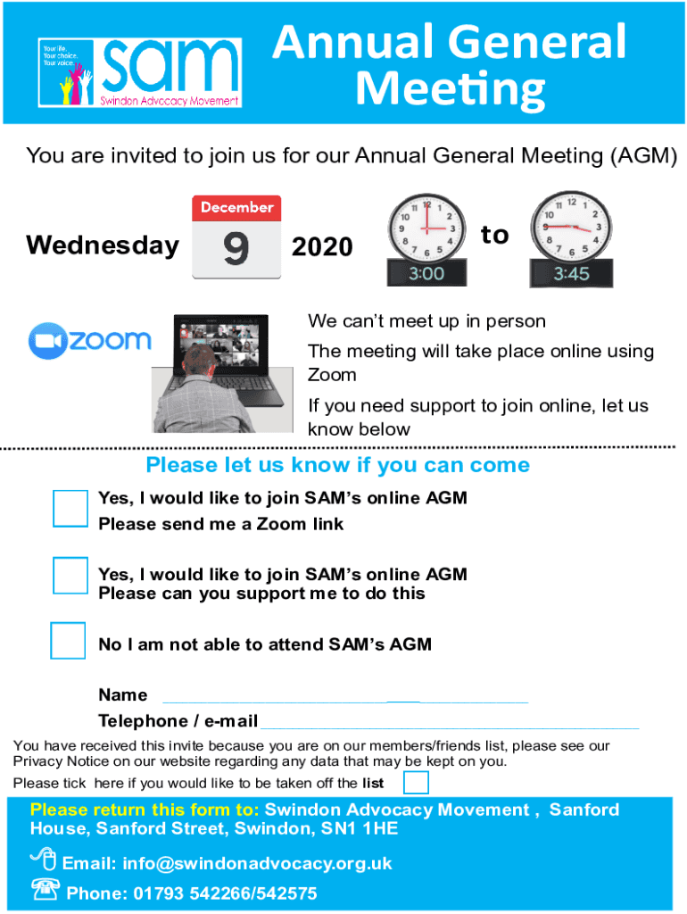 Annual General Meeting You are invited to join us for our Annual General Meeting (AGM)Wednesday2020toWe cant meet up in person The meeting will take place online using Zoom you need support to join