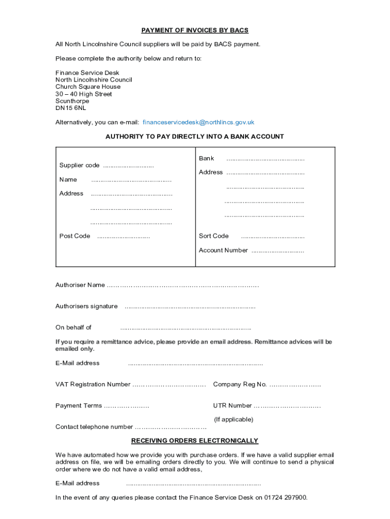 All North Lincolnshire Council suppliers will be paid by BACK payment.