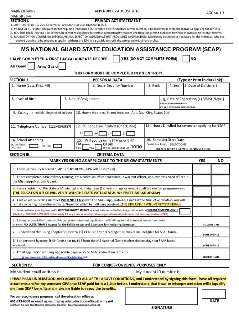 MANNER 6001 MANOR 354APPENDIX I, 7 AUGUST 2018SECTION I.PRIVACY ACT STATEMENTRESET FORMAG0 5A111. AUTHORITY: 10 USC 275, Order 9397, and MANNER 6001/MANNER 354. 2. PRINCIPAL PURPOSE: The purpose for