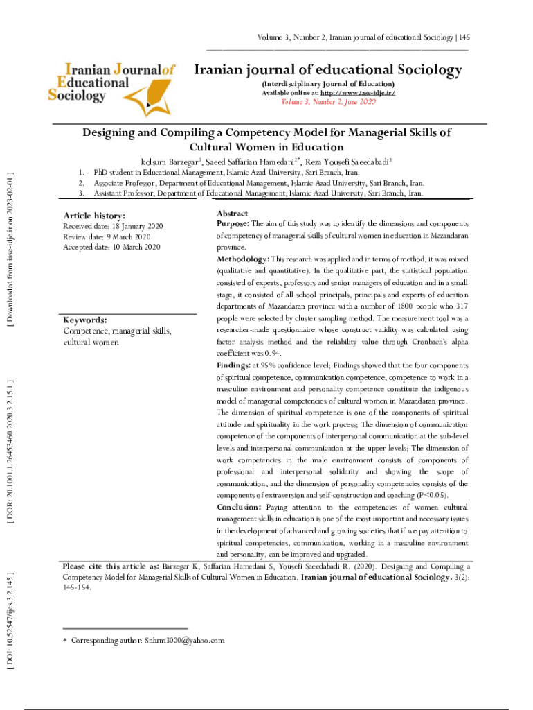 Volume 3, Number 2, Iranian journal of educational Sociology|145
