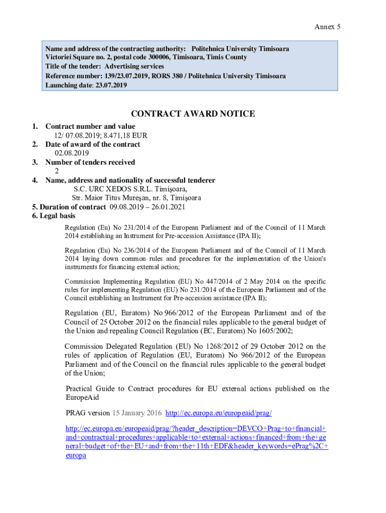 Name and address of the contracting authority: Polytechnic University Timişoara