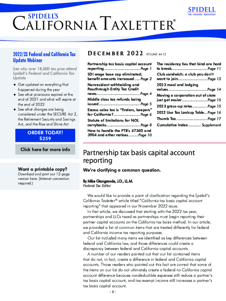 California Tax letter 2022/23 Federal and California Tax Update Webinar See why over 18,000 tax pros attend Spells Federal and California Tax Update Get updated on everything that happened during