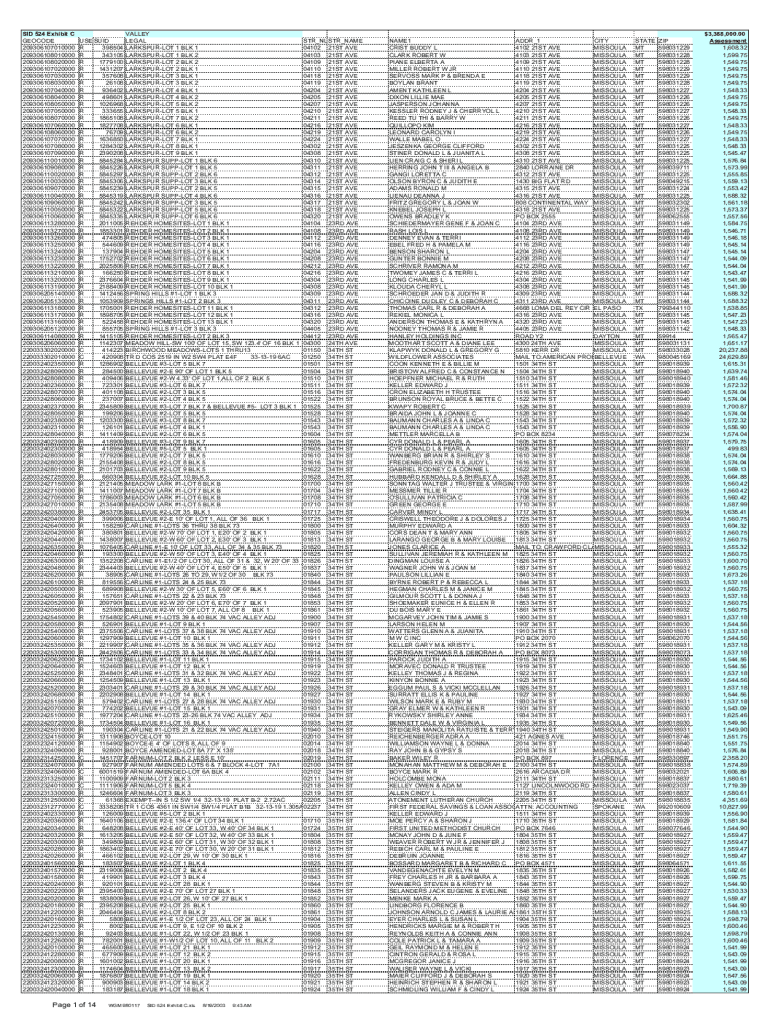 Get the free SID 524 Exhibit C.xls - ftp ci missoula mt