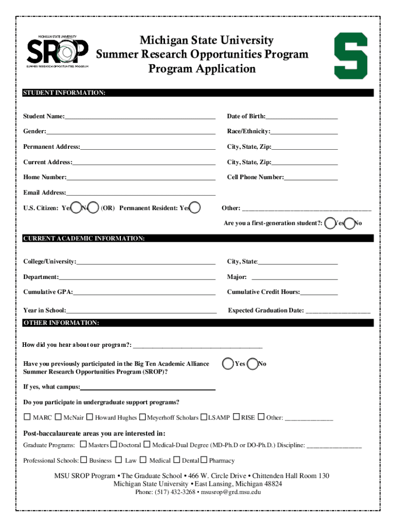 Get the free SROP Home - MSU Graduate School - Michigan State University - grad msu