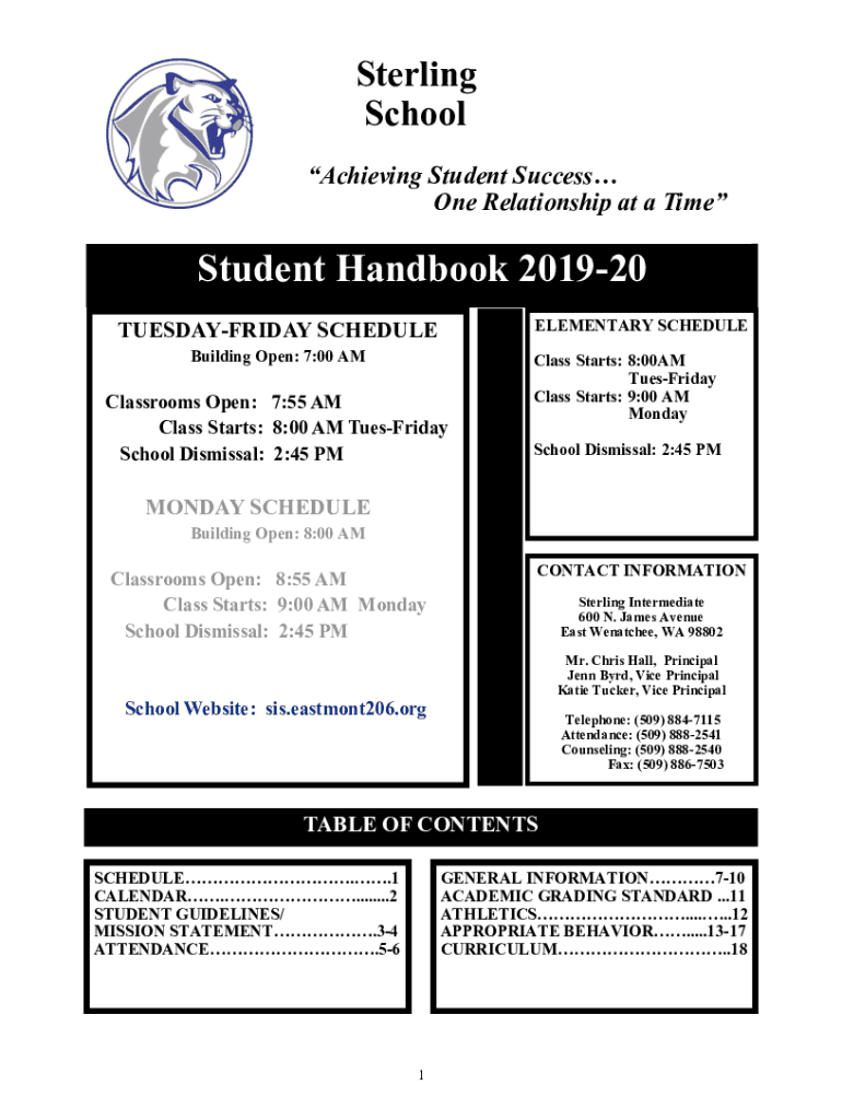 Sterling School Achieving Student Success One Relationship at a TimeStudent Handbook 201920 ELEMENTARY SCHEDULETUESDAYFRIDAY SCHEDULE Building Open: 7:00 Classrooms Open: 7:55 AM Class Starts: 8:00
