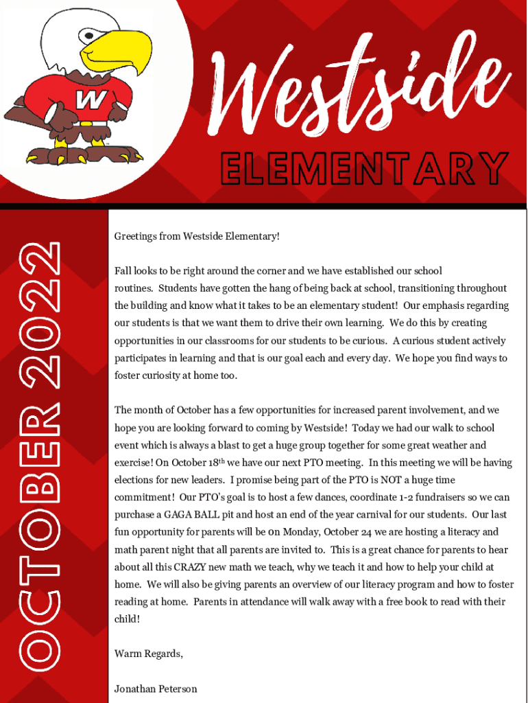 Greetings from Westside Elementary! Fall looks to be right around the corner, and we have established our school routines. Students have gotten the hang of being back at school, transitioning throughout