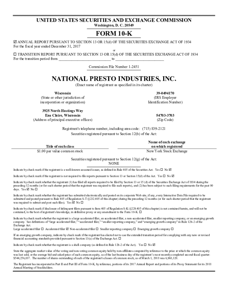 National Presto Industries Inc. must be filled out with accurate and up-to-date information about the company's financial status and operations.