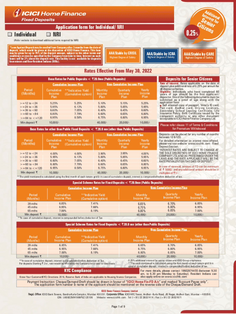 Ad Int edition The Serest foal ICICI or zens Application form for Individual/ NRIIndividual0.25%NRI(Refer website to download additional forms required for NRI)\” Loan Against Deposit may be availed