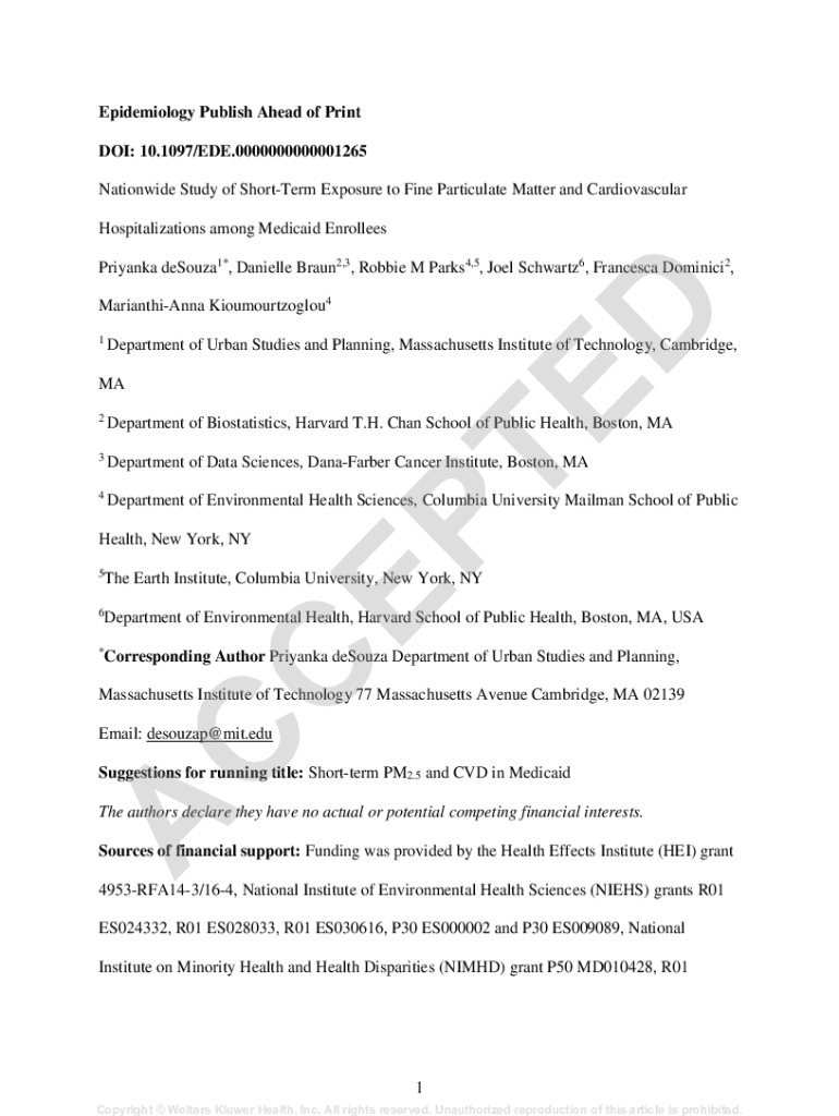 Get the free Nationwide Study of Short-term Exposure to Fine Particulate ... - senseable mit