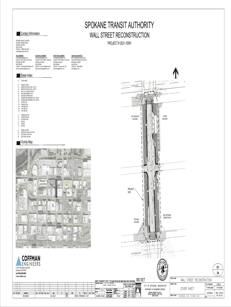 SPOKANE TRANSIT AUTHORITY Contact Information:WALL STREET RECONSTRUCTIONSPOKANE TRANSIT AUTHORITY 1230 WEST BOONE AVENUE SPOKANE, WA 99201 (509) 3441868 CONTACT ROBERT PULASKI (rbielaski@spokanetransit.com)