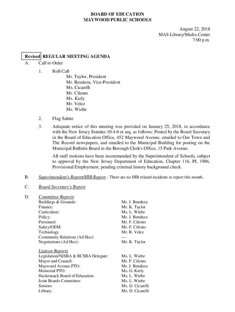 7:00 p.m. Revised REGULAR MEETING AGENDA