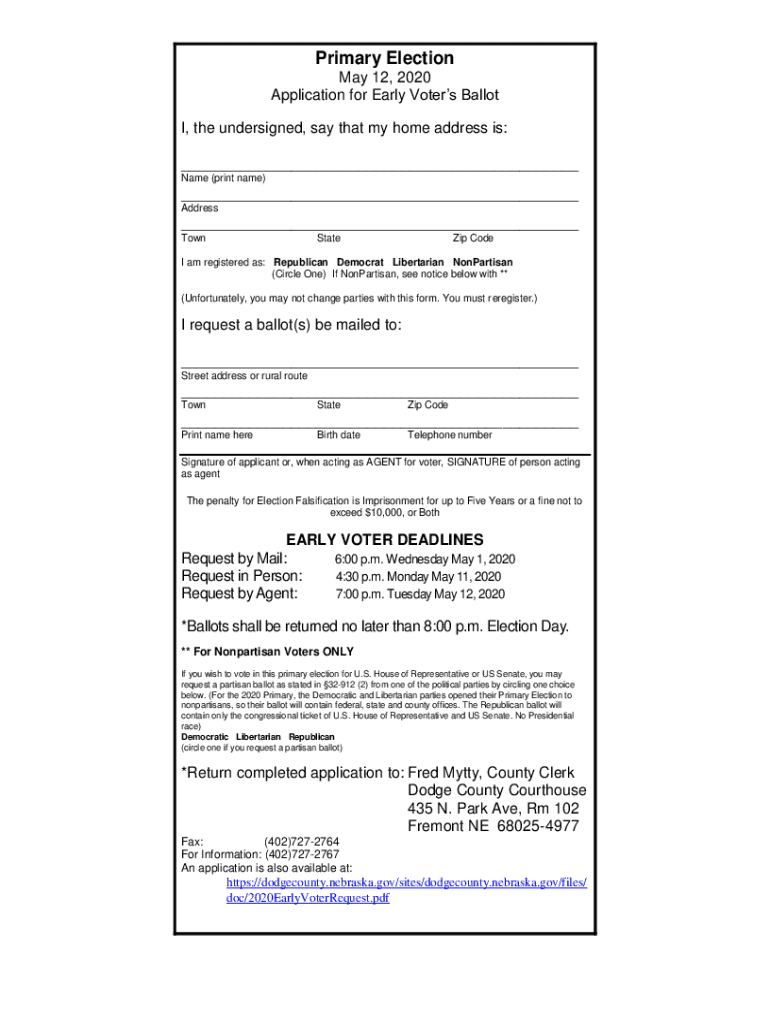 Get the free Application for Early Voter's Ballot - Dodge County Nebraska