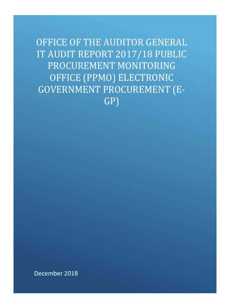 OFFICE OF THE AUDITOR GENERAL IT AUDIT REPORT 2017/18 PUBLIC PROCUREMENT MONITORING OFFICE (PPM) ELECTRONIC GOVERNMENT PROCUREMENT (EGP)December 2018Office of the Auditor General IT Audit report 2017/18