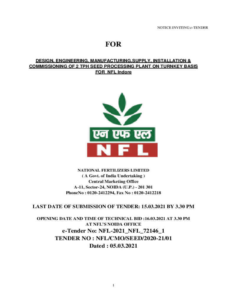 FOR NFL International FERTILIZERS LIMITED(A Govt.
