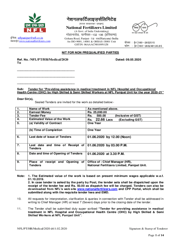 s % nflpanipat@nfl.co.inGohana Road, Animal 132 106(Haryana)