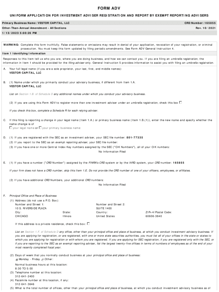 FORM ADV UNIFORM APPLICATION FOR INVESTMENT ADVISER REGISTRATION AND REPORT BY EXEMPT REPORTING ADVISERS Primary Business Name: VECTOR CAPITAL, LLC CRD Number: 165855OtherThanAnnual Amendment All