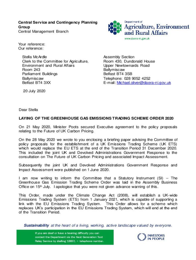 Central Service and Contingency Planning Group Central Management BranchYour reference: Our reference: Stella McArdle Clerk to the Committee for Agriculture, Environment and Rural Affairs Room 243