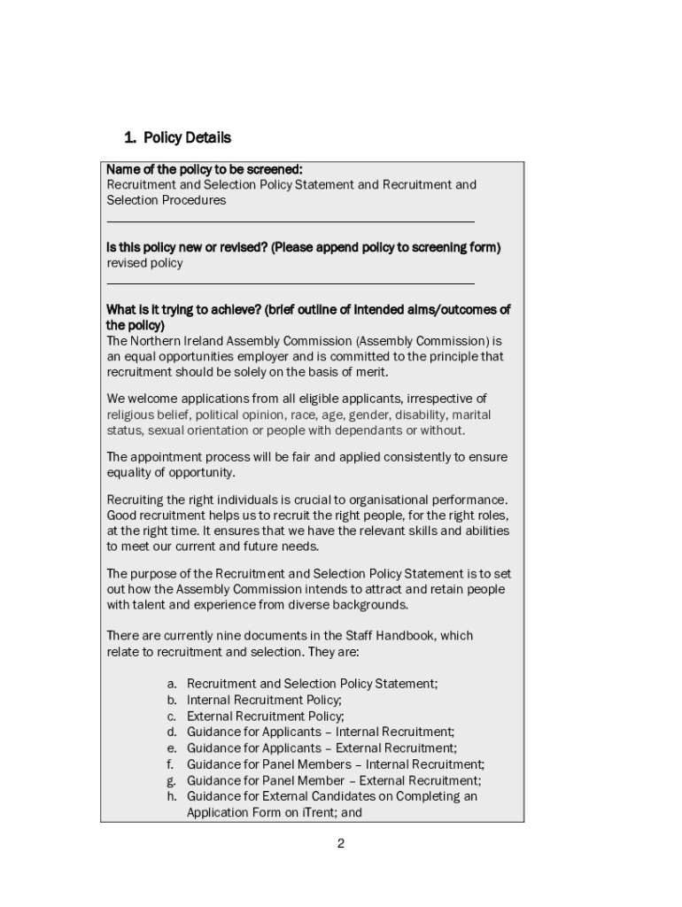 Annex Northern Ireland AssemblySECTION 75 SCREENING FORM What is a policy? The Equality Commission has defined policies as all the ways a public authority carries out, or proposes to carry out, its