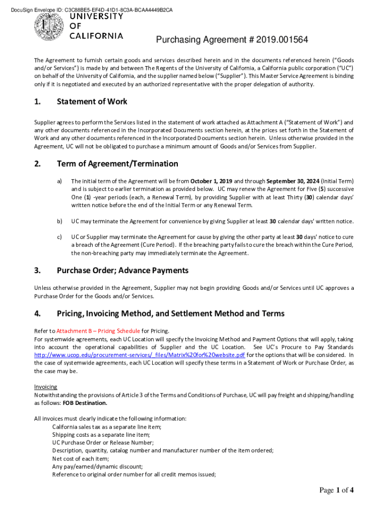 Get the free Purchasing Agreement # 2019.001564 1. Statement of Work 2 ...