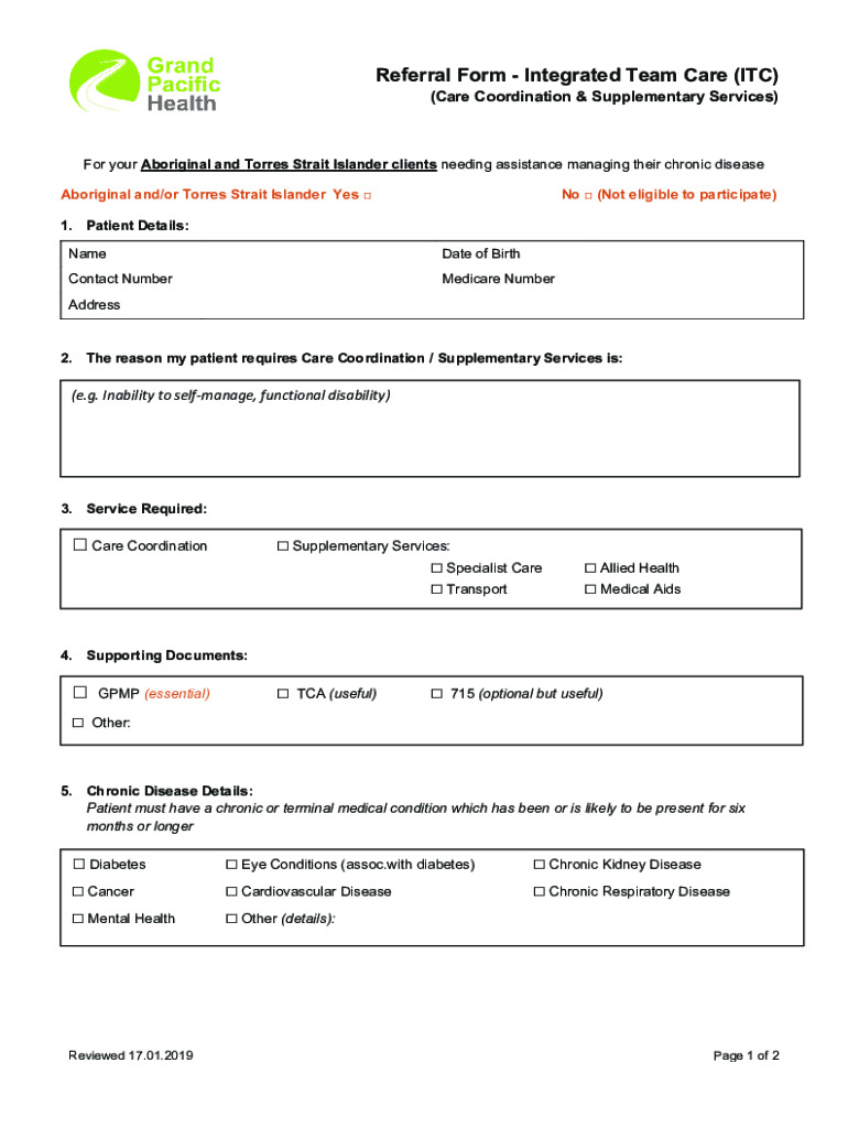 Get the free GP Referral Form Integrated Team Care (ITC) Program for ...