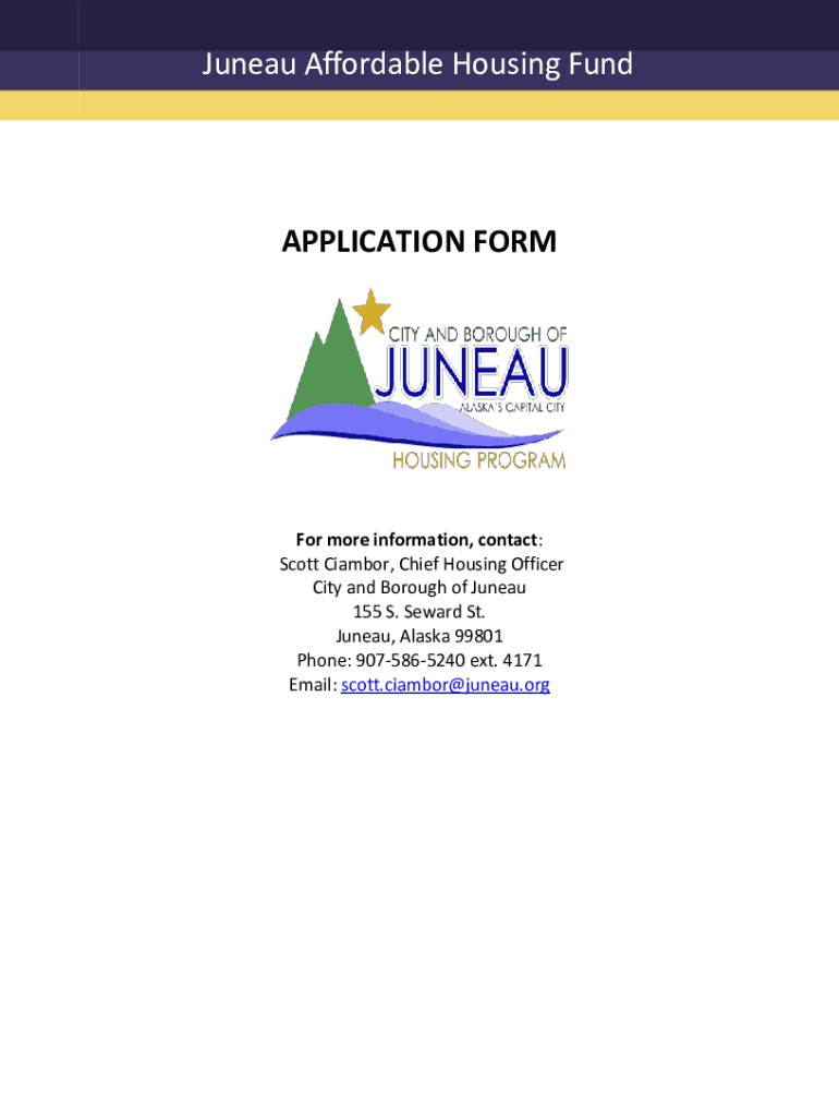 Juneau Affordable Housing FundAPPLICATION Former more information, contact: Scott Chamber, Chief Housing Officer City and Borough of Juneau 155 S. Seward St. Juneau, Alaska 99801 Phone: 9075865240