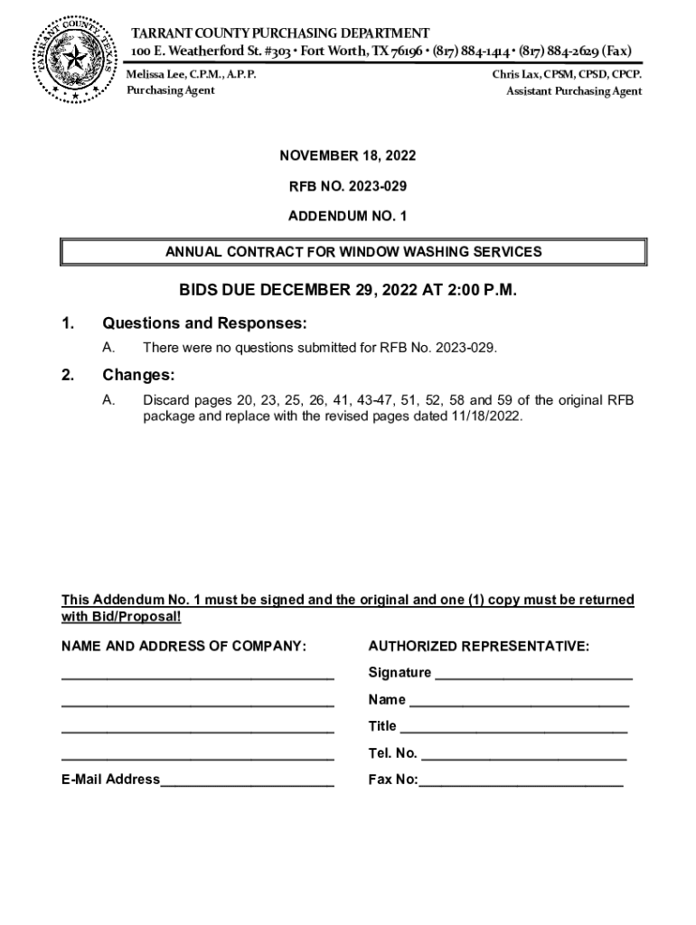 TARRANT COUNTY PURCHASING DEPARTMENT 100 E. Weatherford St. #303 Fort Worth, TX 76196 (817) 8841414 (817) 8842629 (Fax) Melissa Lee, C.P.M., A.P.P. Purchasing Agent Chris Lax, CPM, PSD, CPC. Assistant