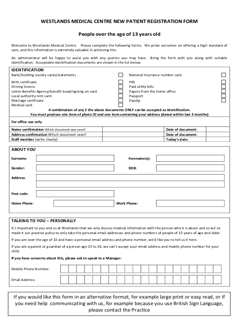 Get the free Westlands Medical Centre - New Patient Registration Form