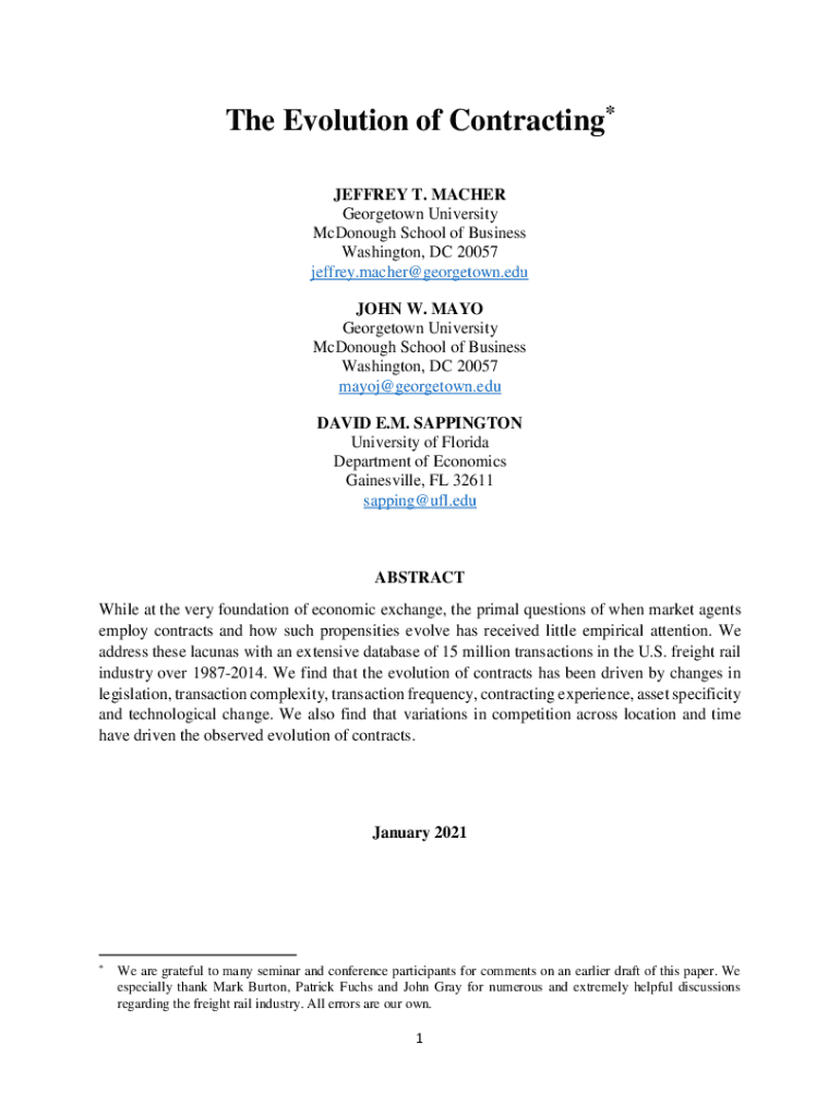 The Evolution of Contracting* JEFFREY T. MATHER Georgetown University McDonough School of Business Washington, DC 20057 jeffrey.macher@georgetown.edu JOHN W. MAYO Georgetown University McDonough School