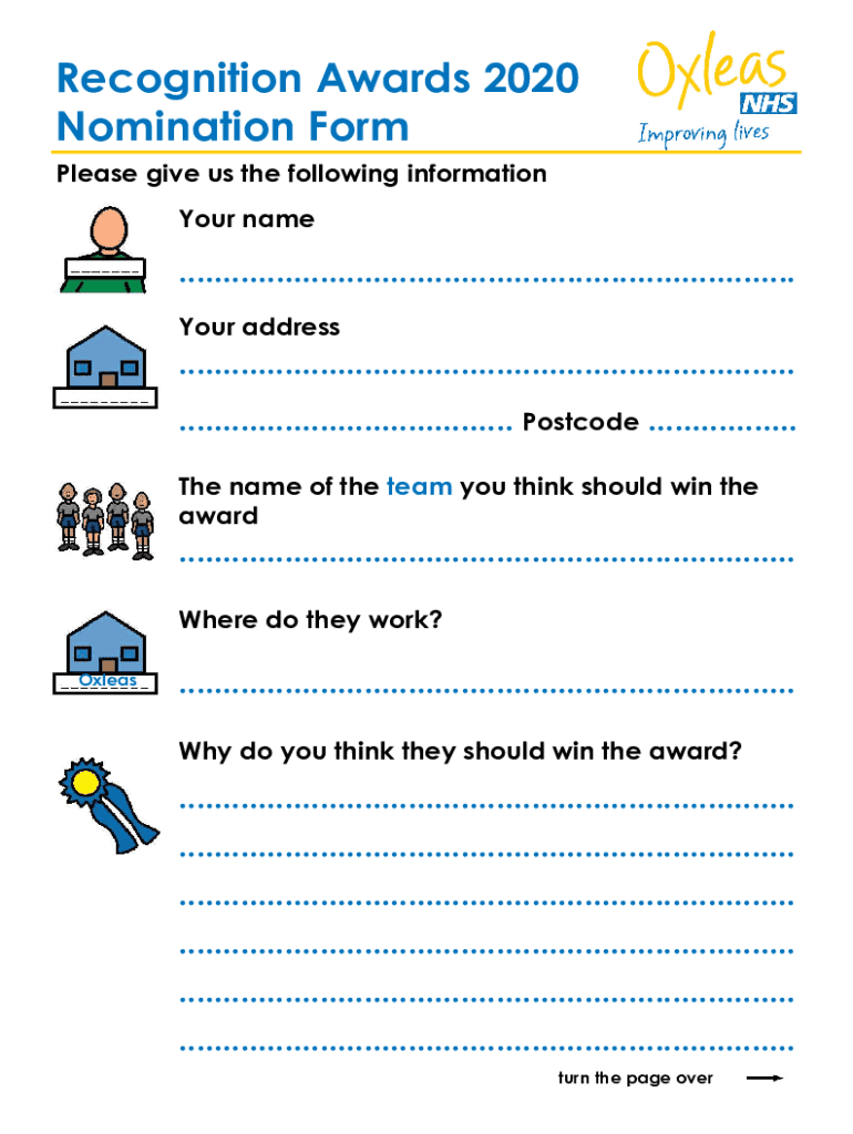 Recognition Awards 2020 Nomination Form Please give us the following information Your name...................................................................... Your address......................................................................