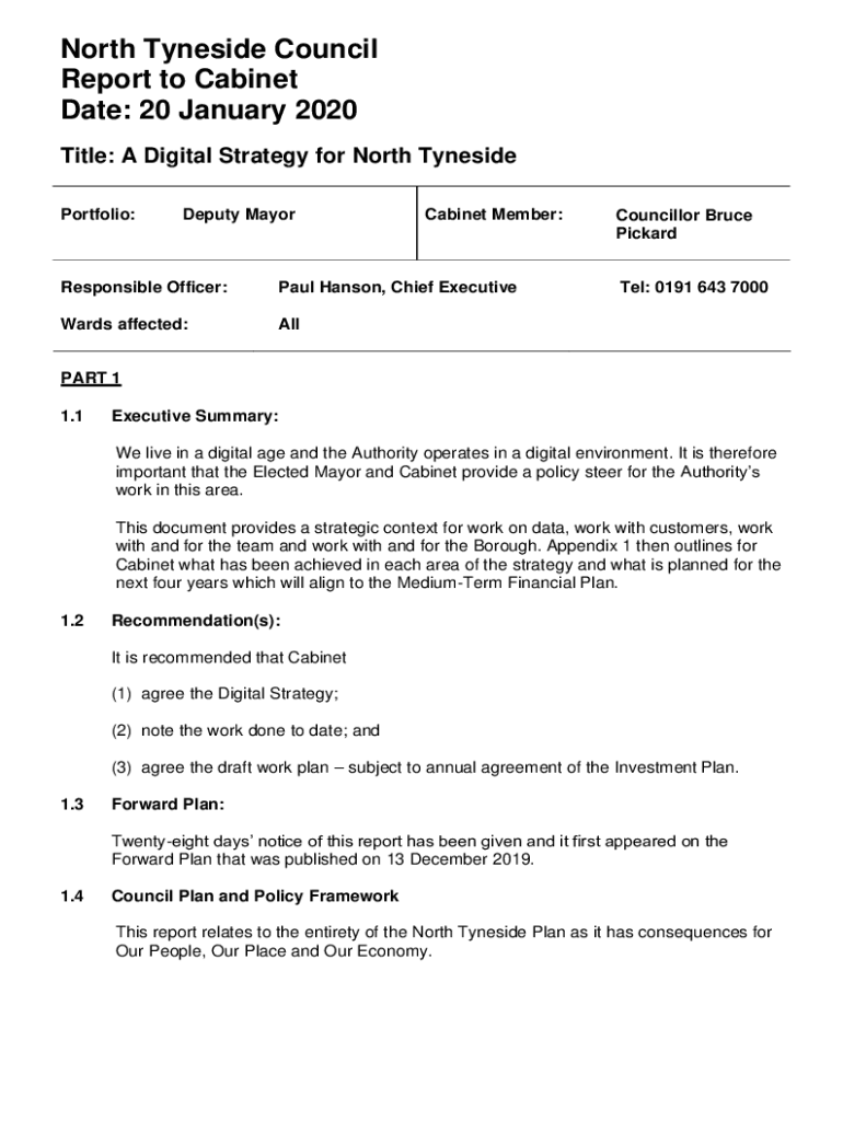 North Inside Council Report to Cabinet Date: 20 January 2020 Title: A Digital Strategy for North Inside Portfolio:Deputy MayorCabinet Member:Responsible Officer:Paul Hanson, Chief ExecutiveWards affected:Councillor