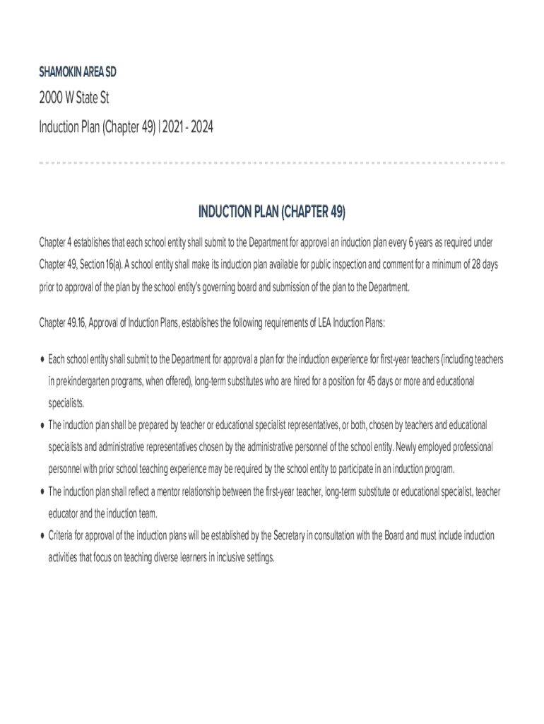 HAMOKINARAD2000Wtatet InductionPlan(Chapter49)|20212024INDUCTIONPLAN(CHAPTR49) Chapter4estalishesthateachschoolentitshallsumittotheDepartmentforapprovalaninductionplanever6earsasrequiredunder Chapter49,ection16(a).