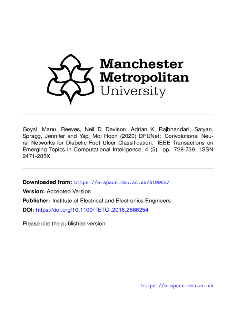 Goal, Many, Reeves, Neil D, Davison, Adrian K, Bhandari, Satan, Sprang, Jennifer and Yap, Moi Hewn (2020) Defunct: Convolutional Neural Networks for Diabetic Foot Ulcer Classification. IEEE Transactions