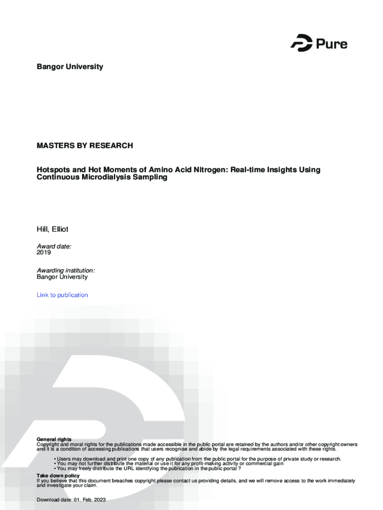 Bangor UniversityMASTERS BY RESEARCH Hotspots and Hot Moments of Amino Acid Nitrogen: Real-time Insights Using Continuous Microdialysis Sampling Hill, Elliot Award date: 2019 Awarding institution: