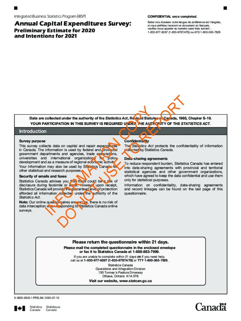 Integrated Business Statistics Program (ISP)CONFIDENTIAL once completed. Annual Capital Expenditures Survey:Salon nos dossiers vote large DE presence est Langley,