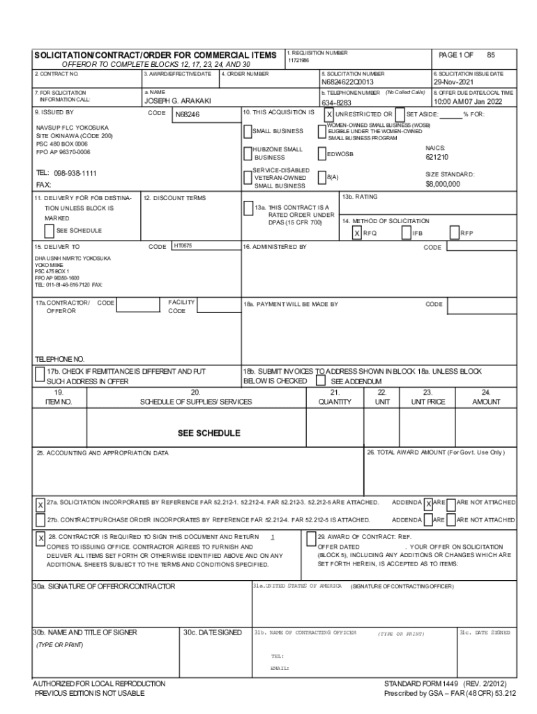SOLICITATION/CONTRACT/ORDER FOR COMMERCIAL ITEMS OFFER OR TO COMPLETE BLOCKS 12, 17, 23, 24, AND 30 2. CONTRACT NO.3. AWARD/EFFECTIVE DATE7. FOR SOLICITATION INFORMATION CALL:9. ISSUED BY4. ORDER
