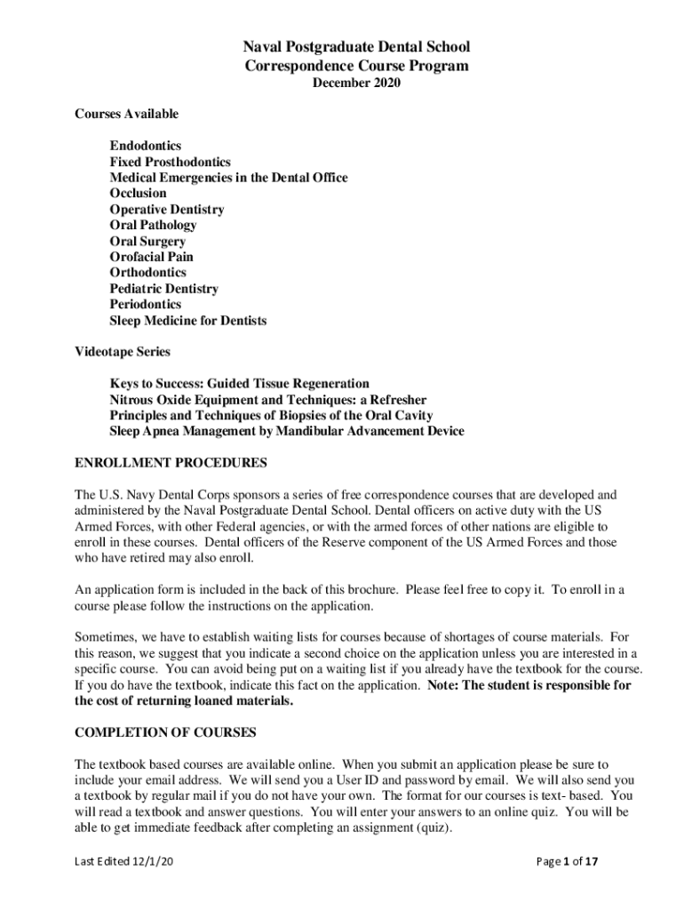 Get the free Naval Postgraduate Dental School Correspondence Course ...